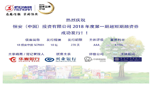 8月30日,羞羞视频18(中国)投资有限公司发行2018年度第一期超短期融资券,发行金额10亿元,期限为270天,主体评级AAA。最终发行价格4.15%,全场申购22.8亿,申购比2.28倍。